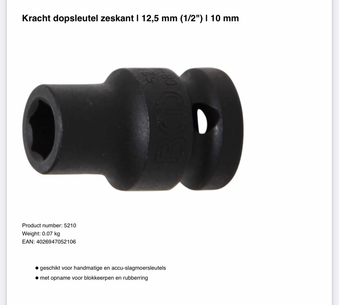 Kracht dopsleutel zeskant | 12,5 mm (1/2") | 10 mm