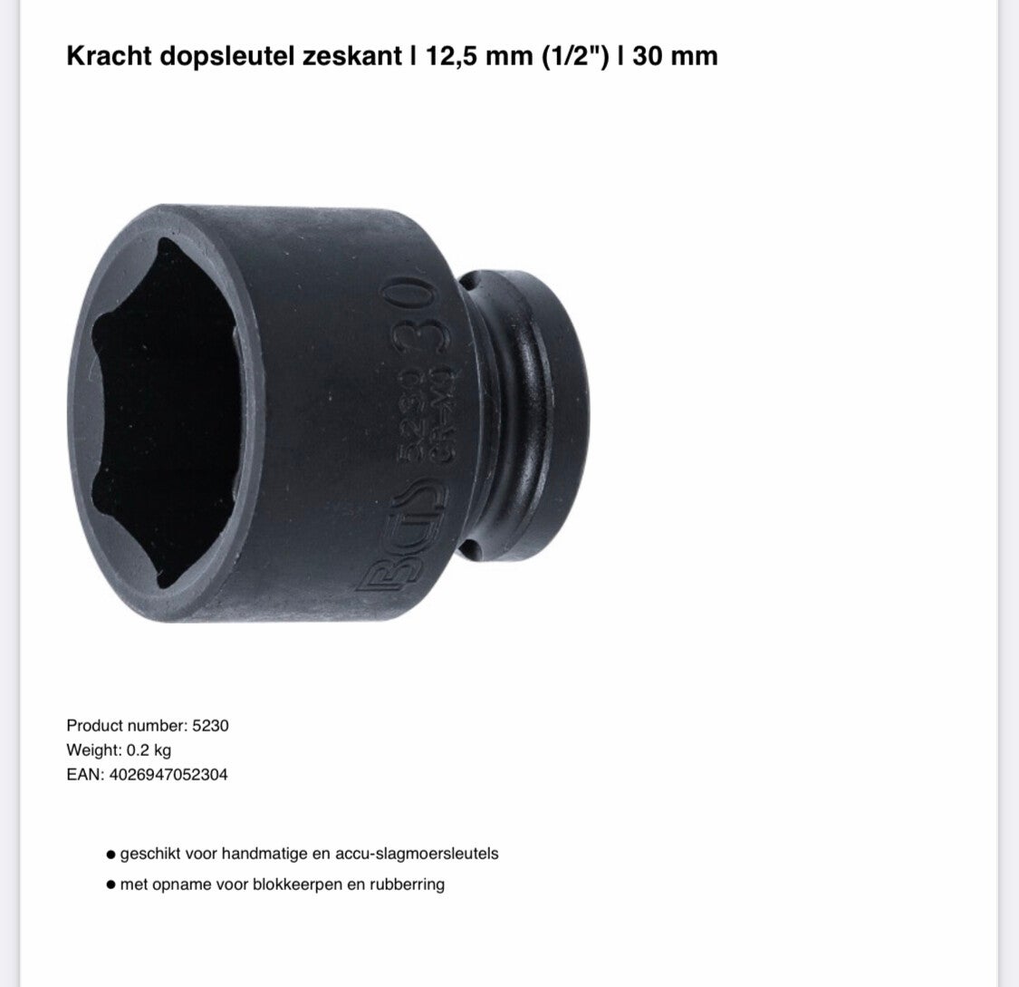Kracht dopsleutel zeskant | 12,5 mm (1/2") | 30 mm