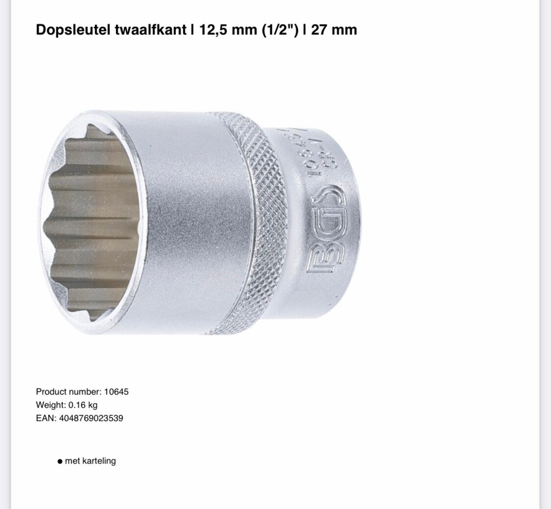 Dopsleutel twaalfkant | 12,5 mm (1/2") | 27 mm