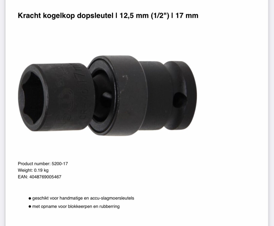 Kracht kogelkop dopsleutel | 12,5 mm (1/2") | 17 mm