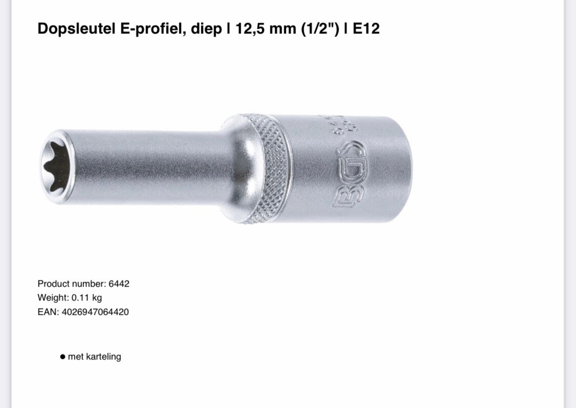 Dopsleutel E-profiel, diep | 12,5 mm (1/2") | E12