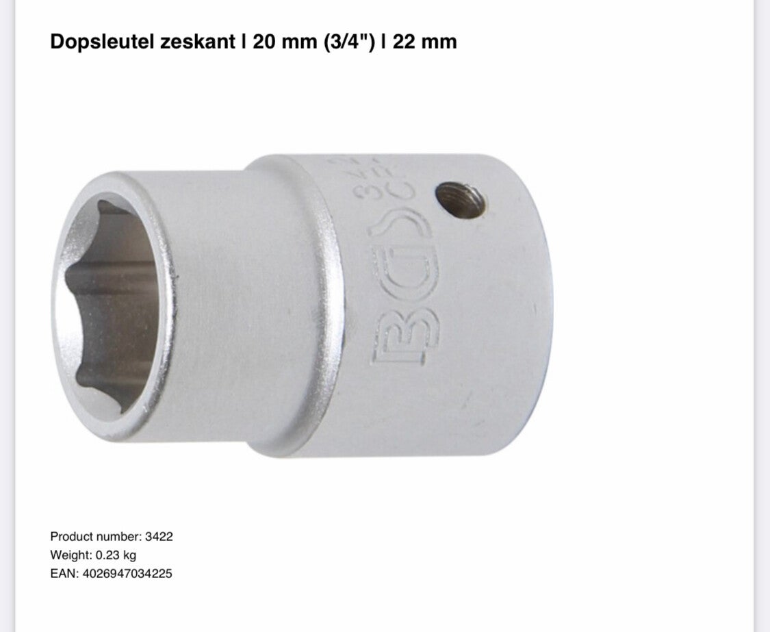 Dopsleutel zeskant | 20 mm (3/4") | 22 mm