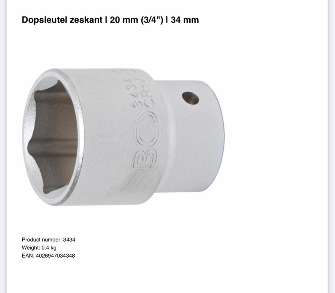Dopsleutel zeskant | 20 mm (3/4") | 34 mm