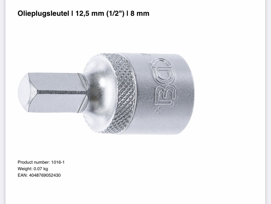 Olieplugsleutel | 12,5 mm (1/2") | 8 mm