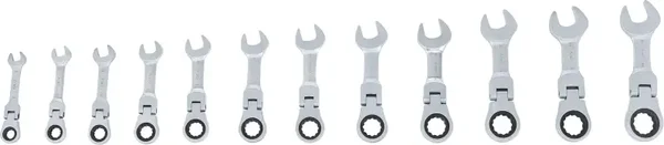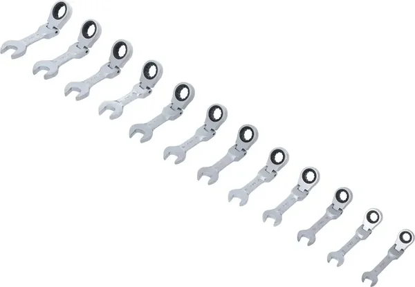 Ratelring-steeksleutelset | kort | plooibaar | 8 - 19 mm | 12-dlg.