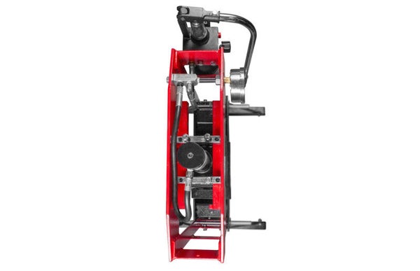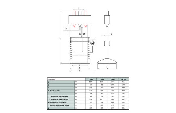 - Zijwaarts verplaatsbare cilinder laat toe om te persen dichter bij de rand van het frame. Handig bij het persen aan de zijkant van grote werkstukken