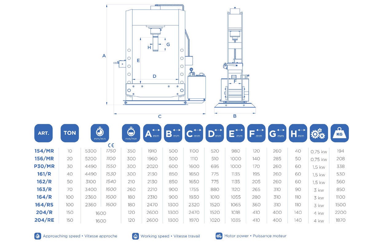 - 2 snelheden: snel zakken en cilinder tot het werkstuk brengen, en precies persen