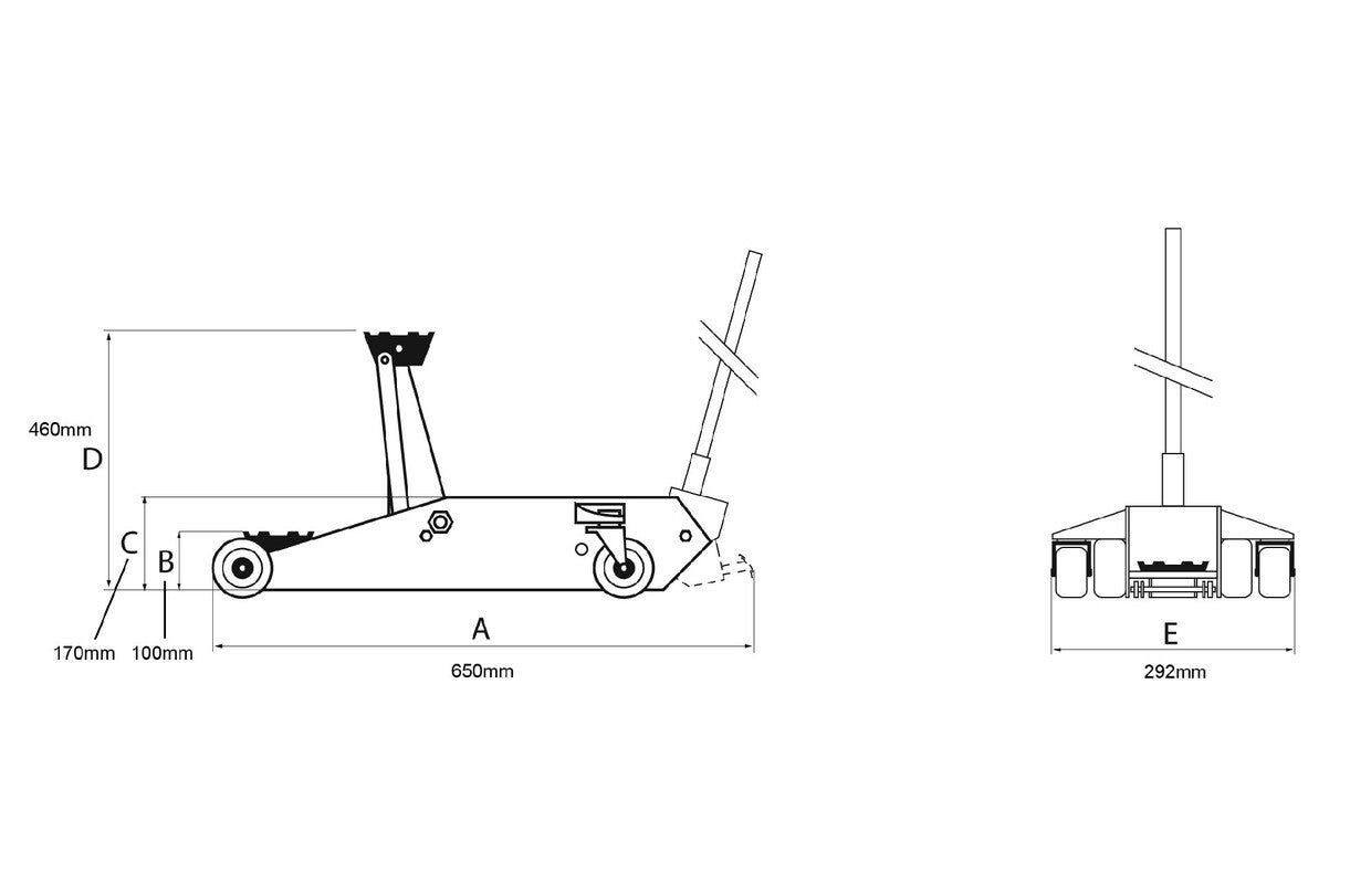 - Hoogwaardige Dubbele pomp: met 1 pompslag wordt veel meer olie verzet, zodat de krik heel snel wordt omhoog gebracht