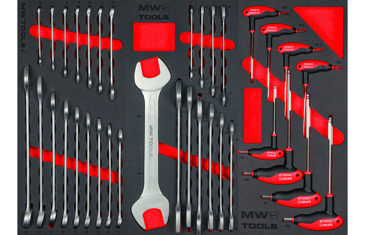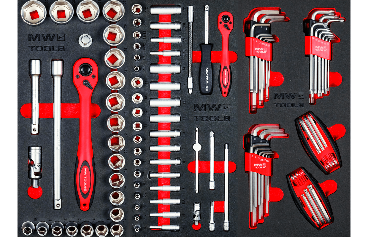 MW TOOLS gereedschap wordt opgeslagen in de unieke FOAM tray modules: