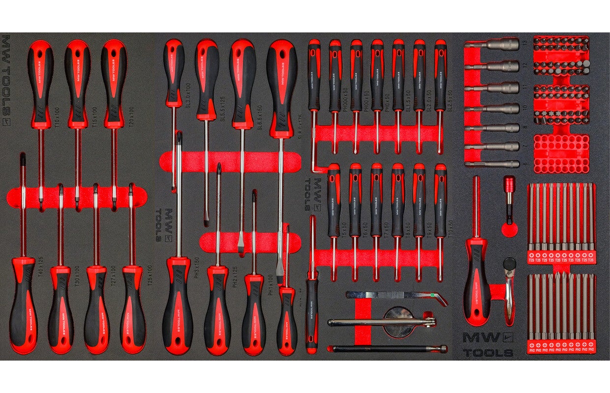MW TOOLS gereedschap wordt opgeslagen in de unieke FOAM tray modules: