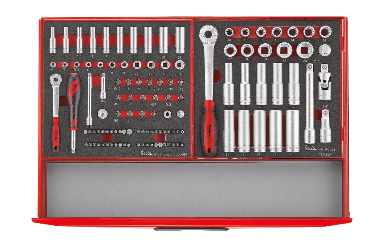 Deze Mini Master FOAM Tools set bestaat uit een set gereedschappen georganiseerd in het unieke Teng Tools systeem, allemaal opgeborgen in een toren bestaande uit een gereedschapswagen en 2 koffers.