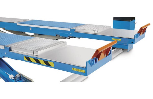 - De werkruimte tussen de oprijplaten is volledig vrij van mechanische verbindingen, waardoor maximale bewegingsvrijheid en uitstekende bedienbaarheid mogelijk is