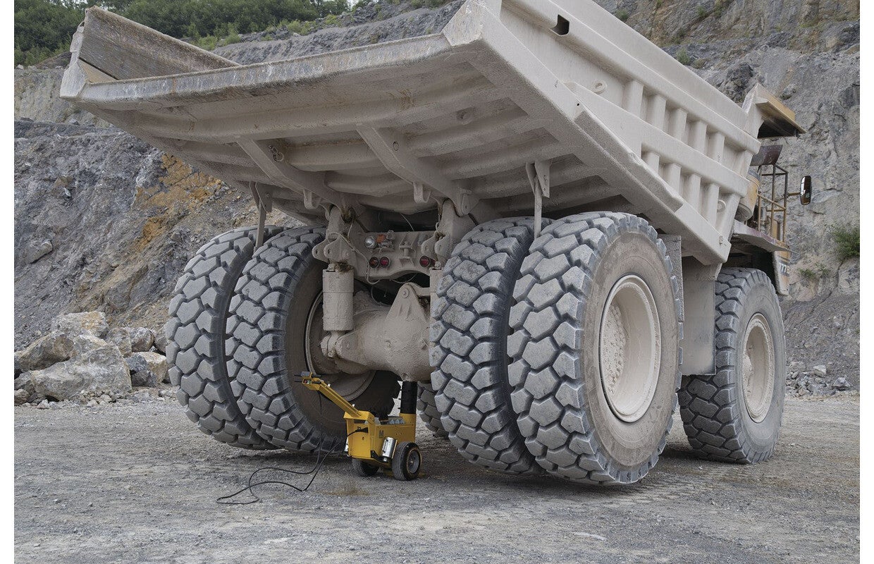 Hydropneumatische MAMMUT krik met capaciteit 80 ton en 3-voudige cilinder.