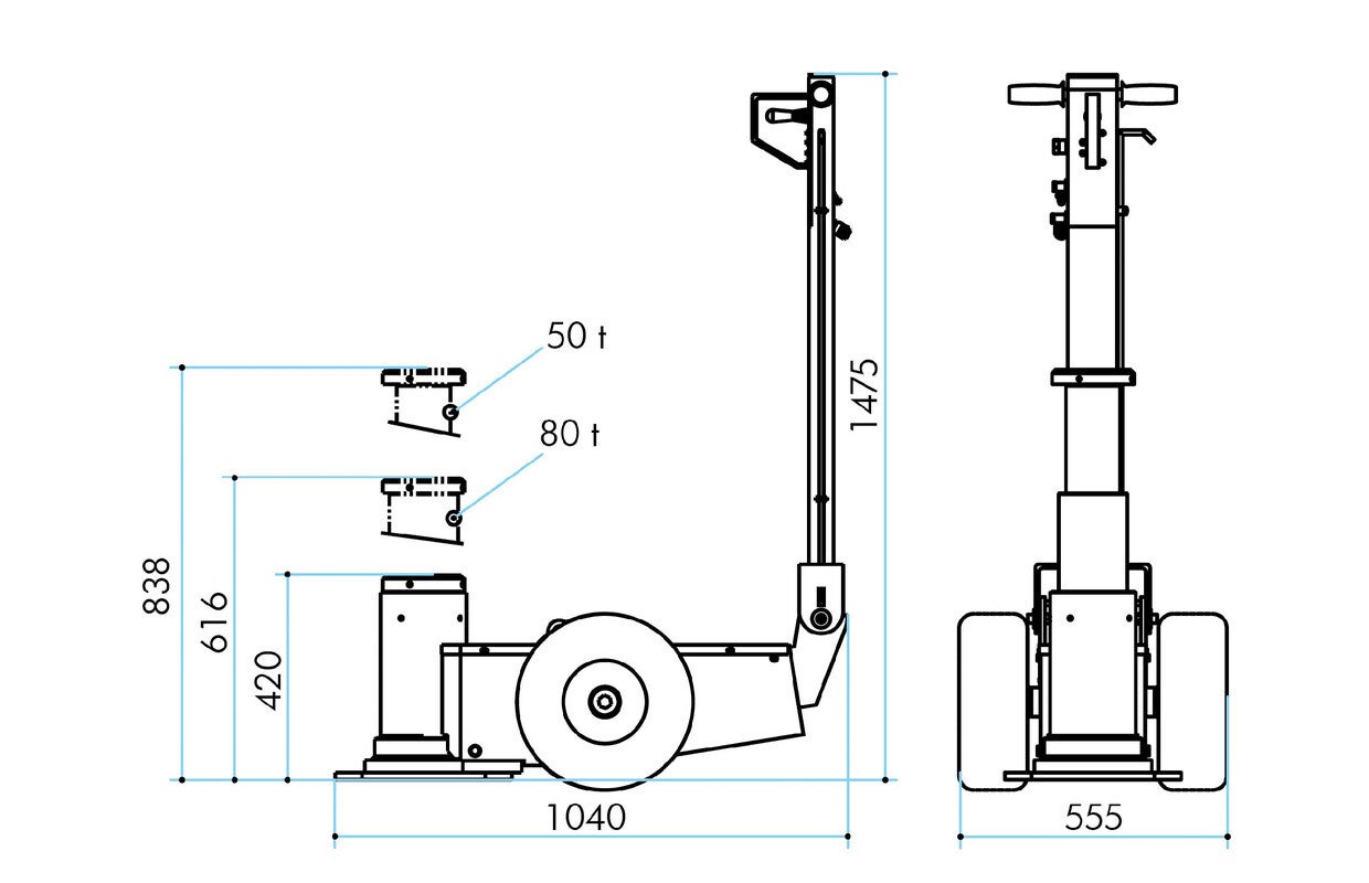 De M80/31 is een heavy-duty 80 T krik, geschikt voor de zwaarste voertuigen zoals havenvoertuigen, kranen en bouwvoertuigen, landbouw, mijnbouw, militaire voertuigen, etc.