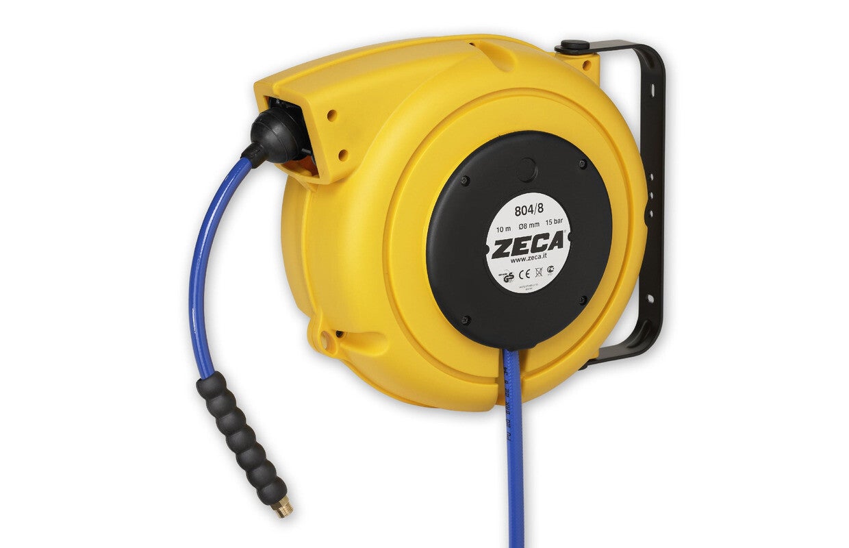 Haspel perslucht en water 11 m Ø 1/2" 15 bar Tech met automatische oprol en zwenkbare muurbeugel Zeca