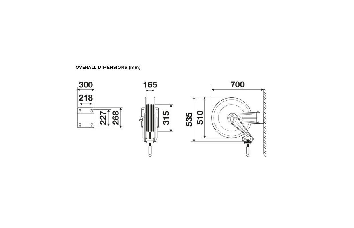 Haspel warm water zonder slang Ø 1" 100 bar Gepoederlakt staal met automatische oprol zwenkbare muurbeugel Raasm