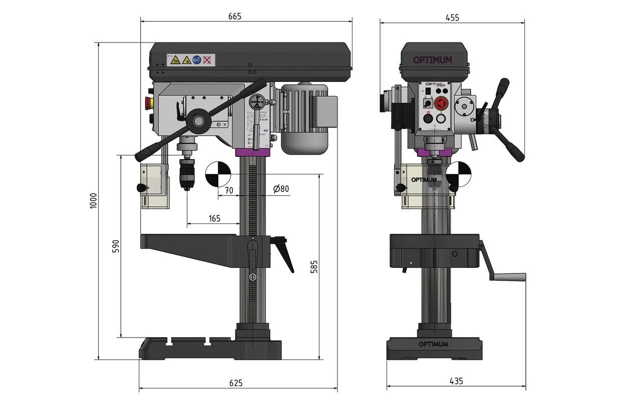 Professionele tafelboormachine boren tot ø 28 mm opname MK3 850W 400V 12 snelheden automatische boorvoeding Optidrill