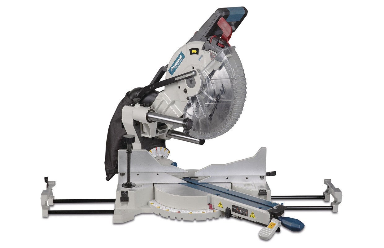 Professionele afkort- en verstekzaag met trekfunctie, laserlijn en variabele zaagsnelheden. Inclusief cirkelzaagblad.