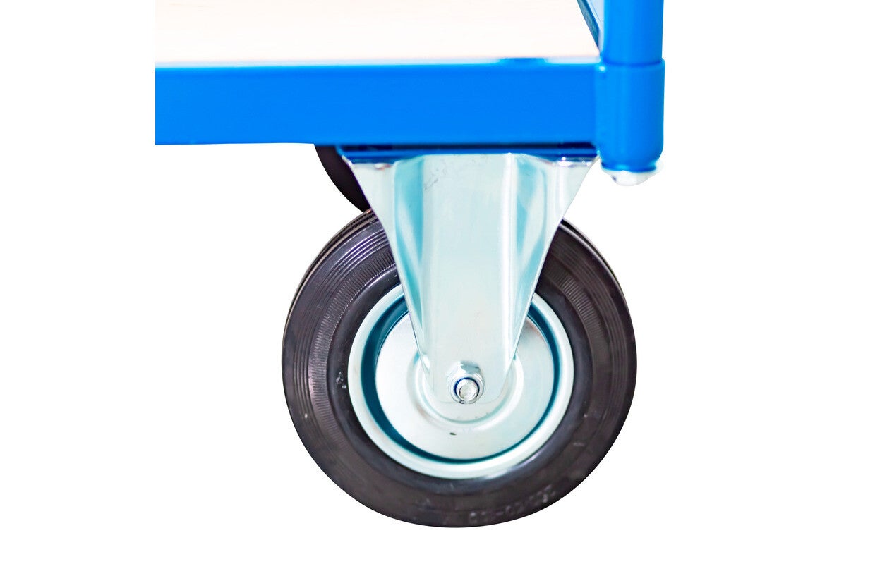 - 2 vaste wielen en 2 zwenkwielen met rem
