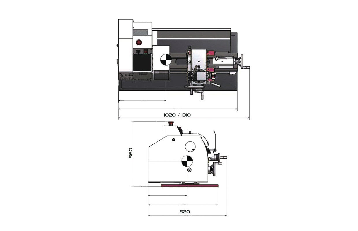 Metaaldraaibank centerhoogte 125 mm centerlengte 550 mm spilboring 21 mm 1,1 kW 230V variabele snelheden Optiturn