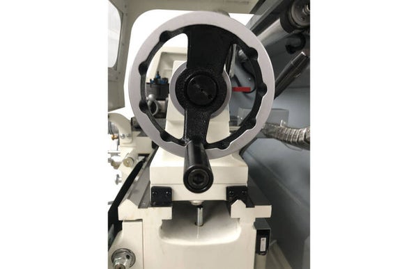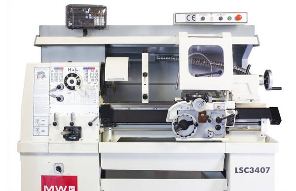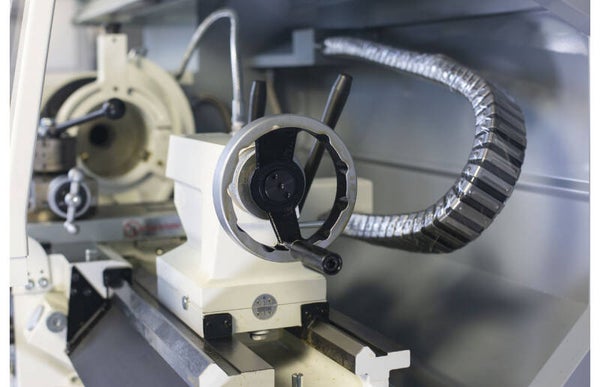 Duurzame, robuuste, hoge kwaliteit metaaldraaibank met digitale aflezing Mitutoyo en koelvloeistofsysteem.