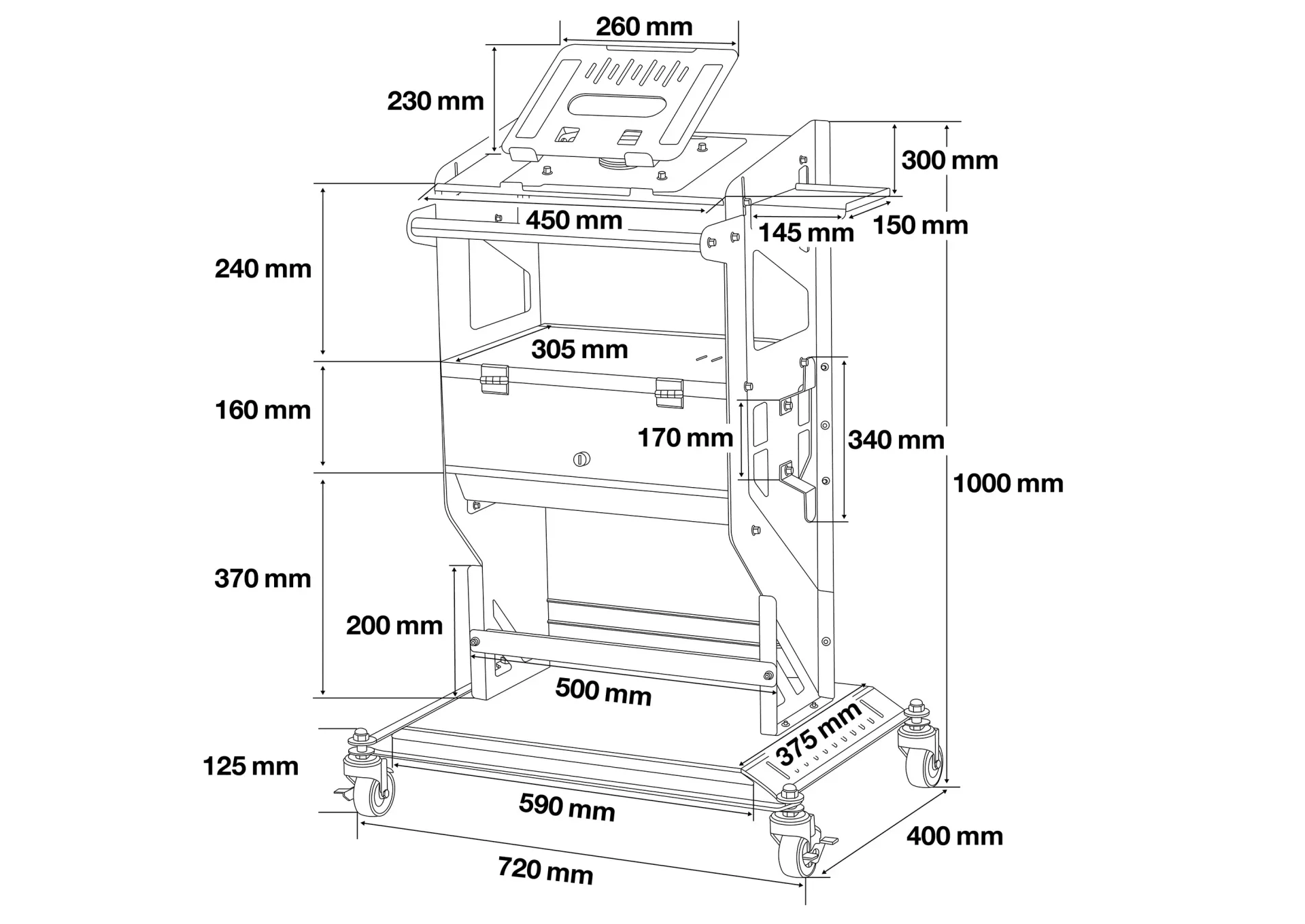 - Breedte van de rolwielen32 mmWilesdiameter75 mmDraagvermogen max.200 kg