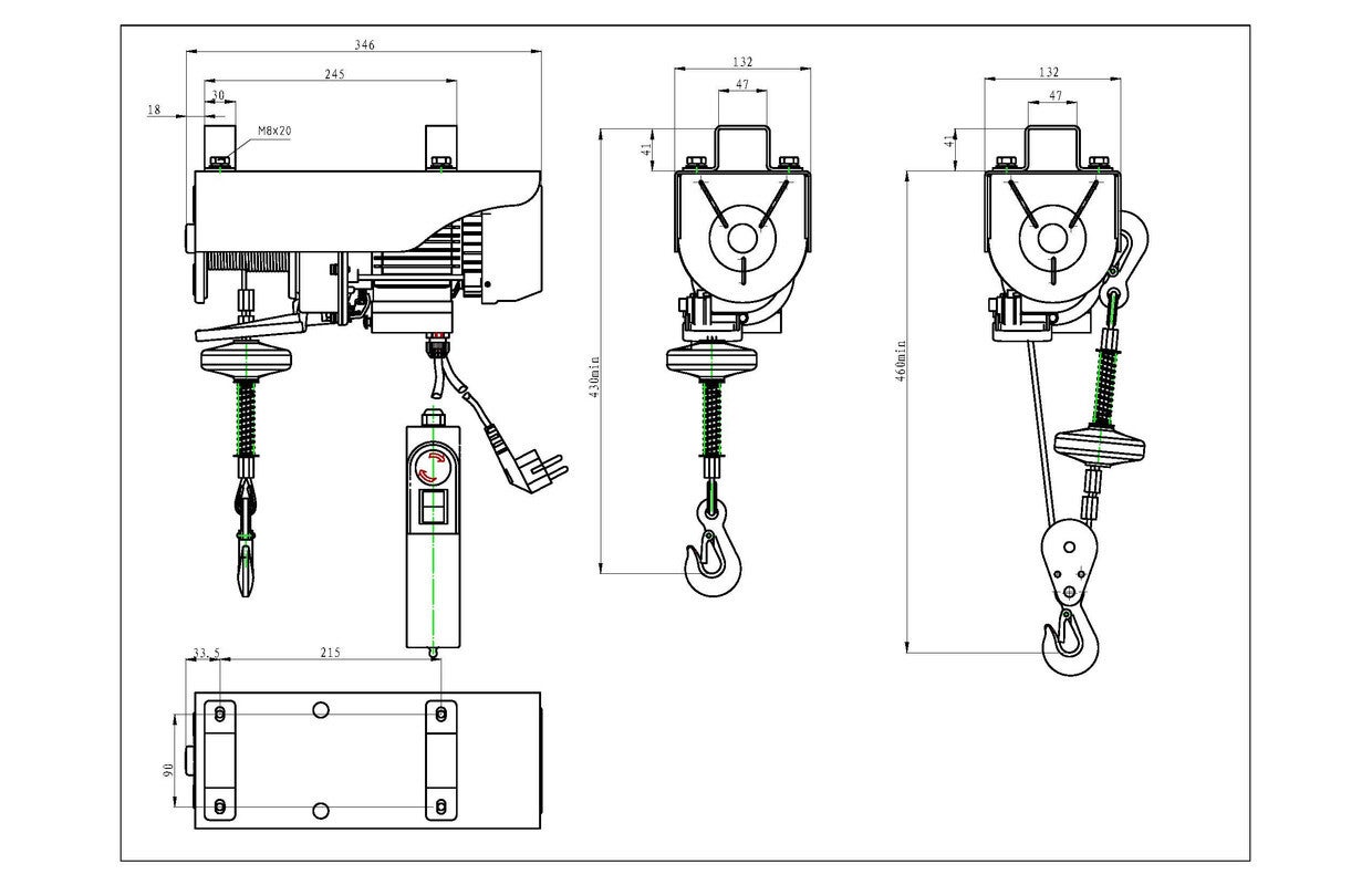 Elektrische kabeltakel 250 kg 12 meter draadloze bediening MW Tools