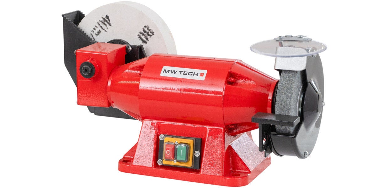 Nat- en droogslijpmachine slijpsteen ø 150 mm 2950 tpm witte slijpsteen ø 200 mm 134 tpm 520 W 230V MW-Tech