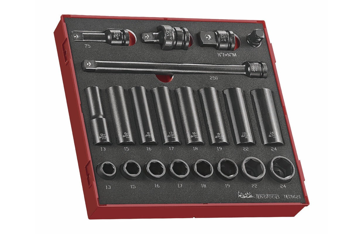 Slagdoppenset Foam2 tray 1/2" 13- 24mm 21 delig Teng Tools