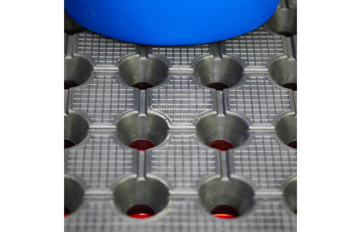 Voorzien van een uitneembaar zwart HDPE rooster waar de vloeistof doorheen kan vloeien. Deze opvangbak is geschikt voor alle vloeistoffen en is eveneens bestand tegen alle chemicaliën. Reiniging van bak is makkelijk dankzij het hoogwaardig HDPE-plastic.
