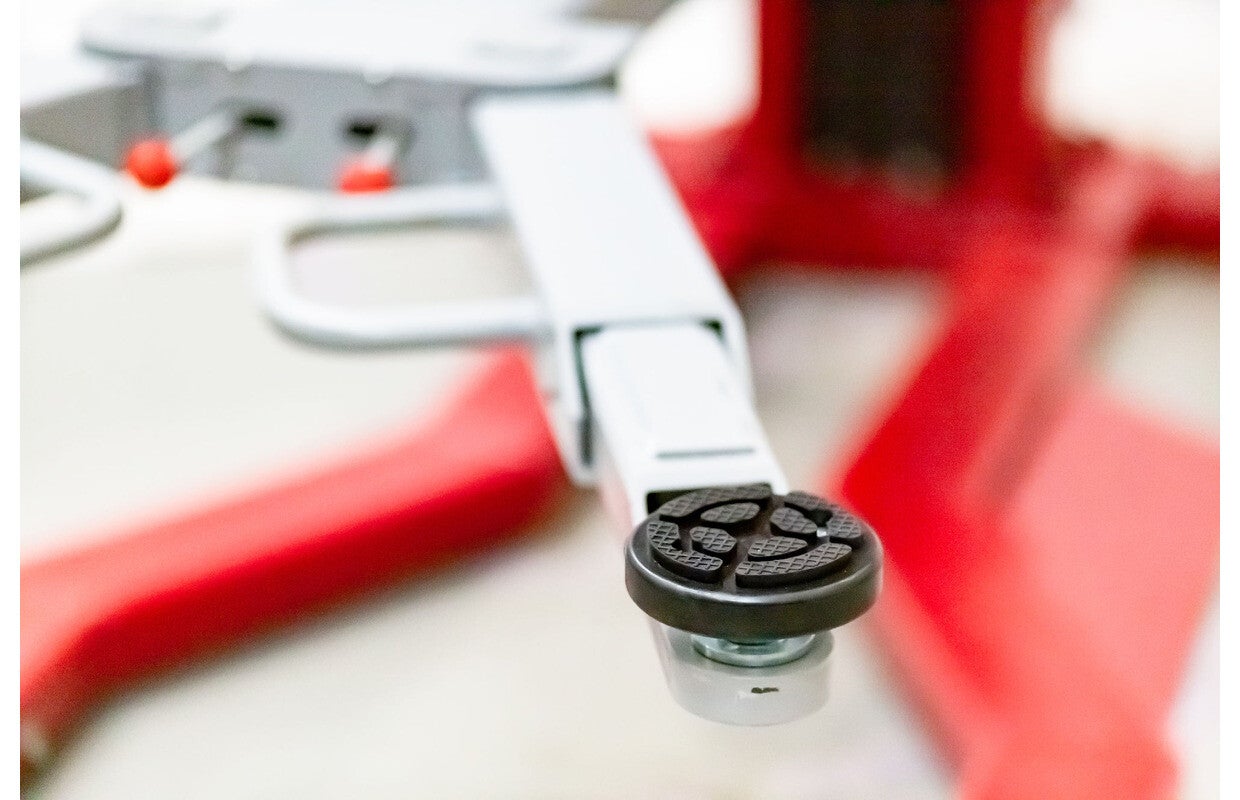 - Rubber steunpads met stelschroeven van 65 mm, aanpasbaar aan de hoogte de krikpunten.