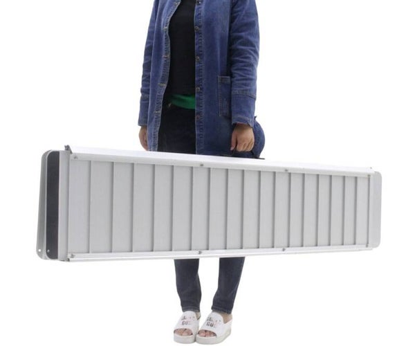 - De rijplaat klapt samen in lengterichting, tot een compact en draagbaar formaat. Een slot aan het uiteinde houdt de rijplaat gesloten. Geleverd met handige draaggreep.