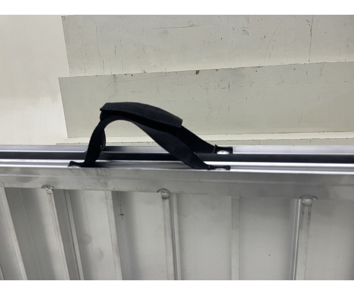 De rijplaat klapt samen in lengterichting, tot een compact en draagbaar formaat.