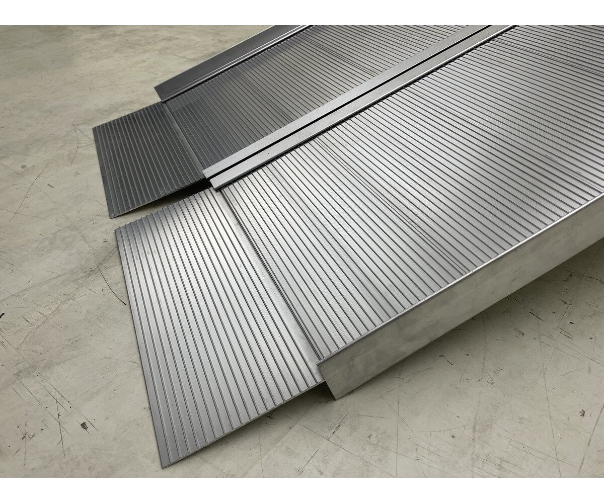 Met zijn extra draagvermogen van 400kg en zijn bredere rijbaan 730 mm is deze oprijplaat geschikt voor zware belasting, extra brede rolstoelen en intensief gebruik.
