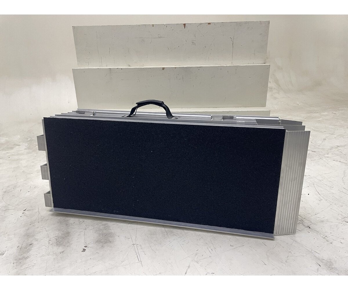 Draagbare en 4-voudig opvouwbare oprijplaat 350 kg met lengte 2100 mm x 760 mm, speciaal ontwikkeld voor scooters, scootmobielen, elektrische rolstoelen, rollators, kinderwagens, etc.