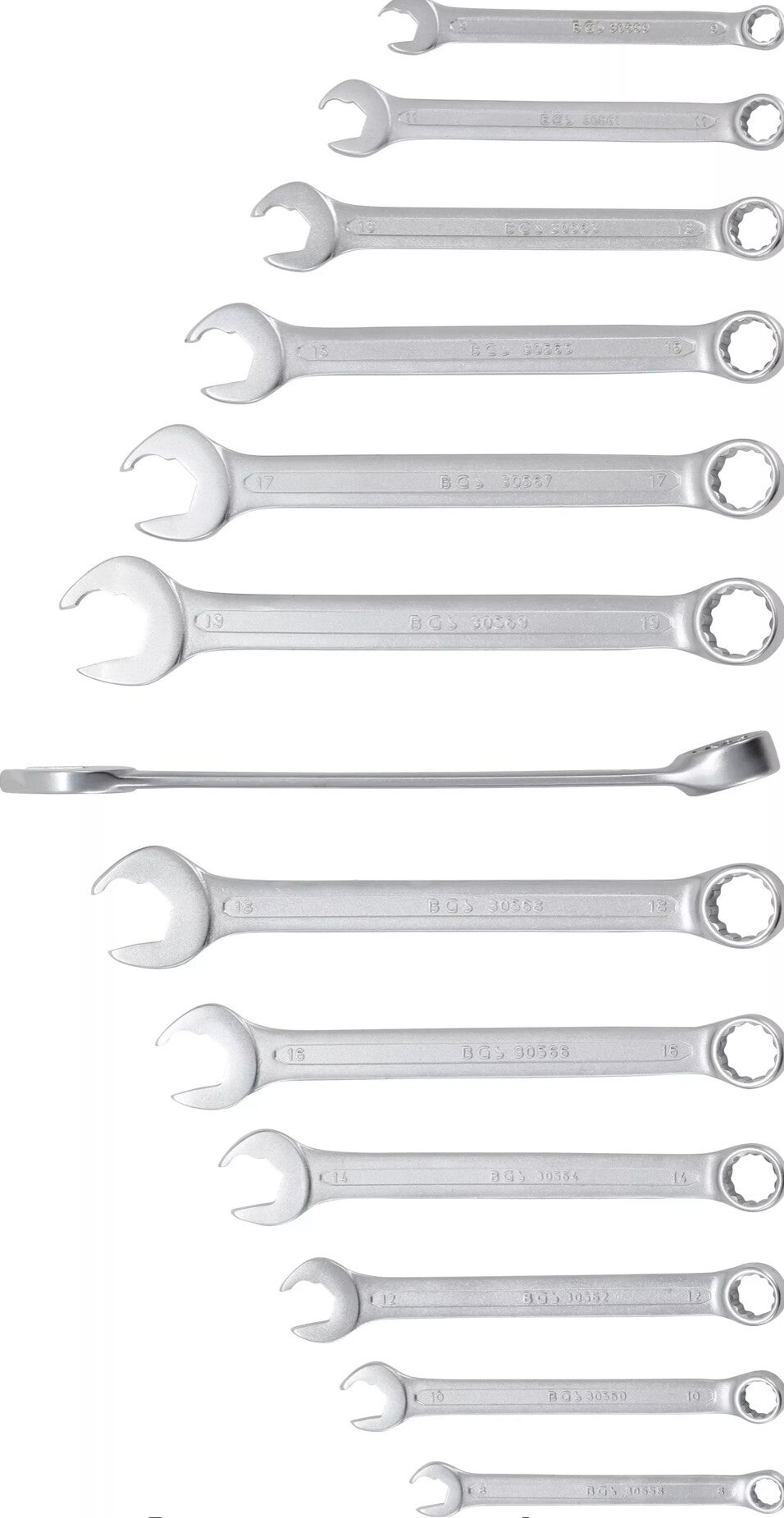 - Steekringsleutel, bekzijde met ratelfunctie: 8 - 9 - 10 - 11 - 12 - 13 - 14 - 15 - 16 - 17 - 18 - 19 - 21 mm